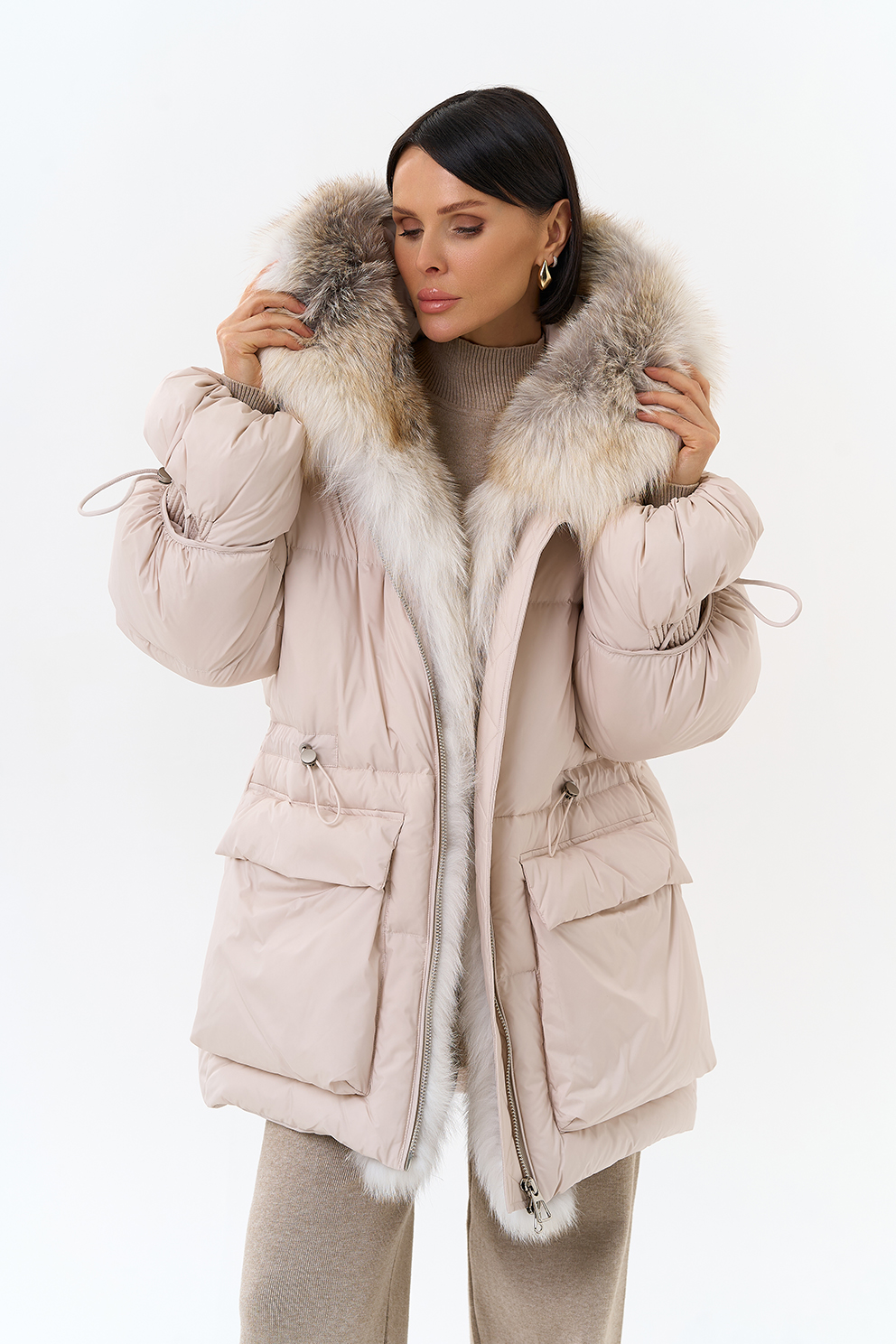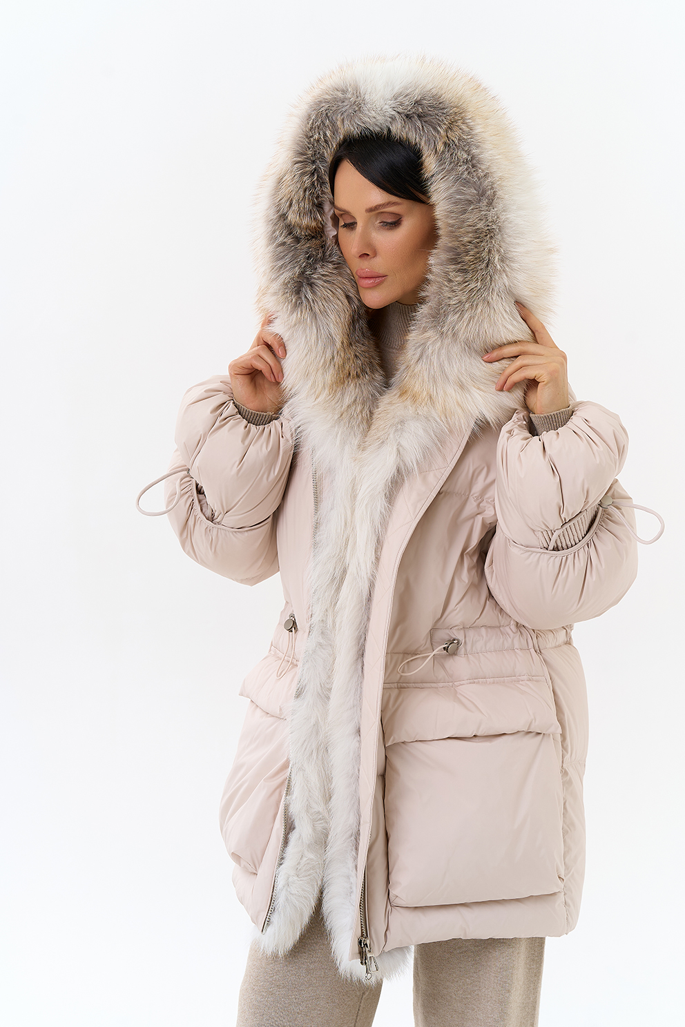 Крой воротника - капюшон, отделка лиса
