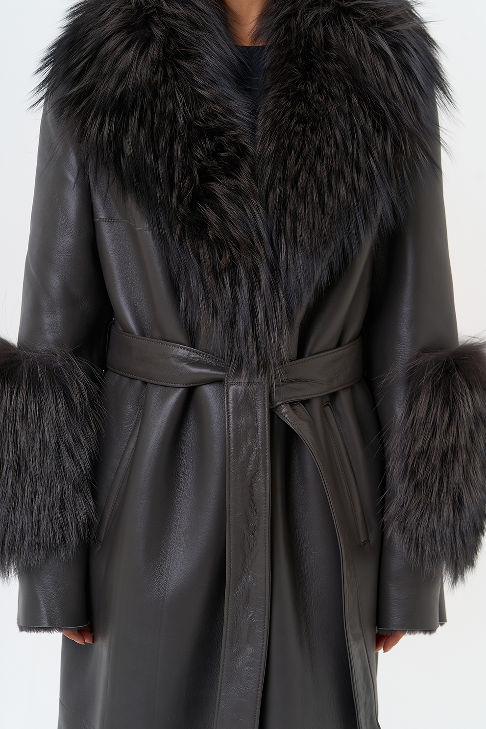 Отделка рукава - мех лисы, цвет серый