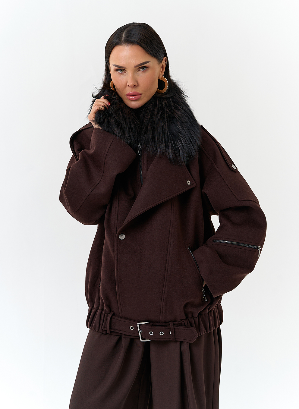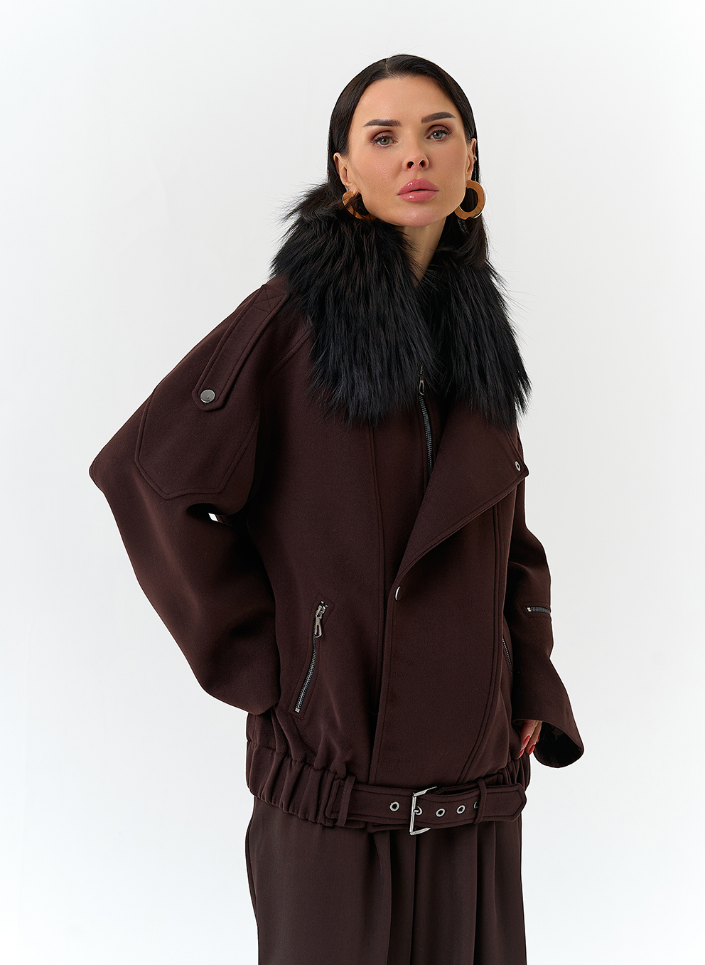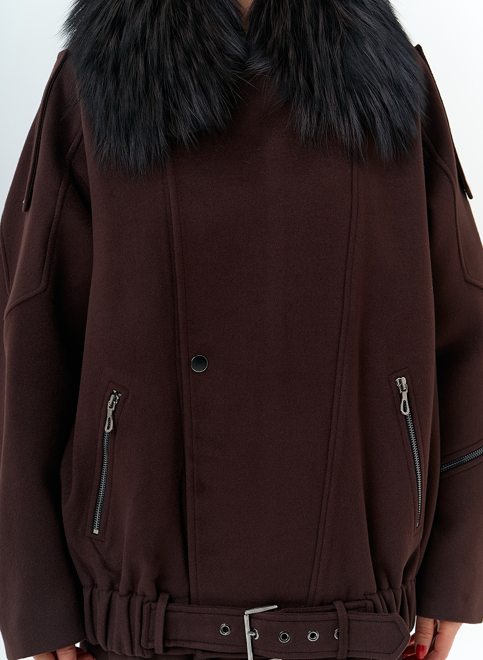Отделка воротника - съемный мех лисы, цвет черный
